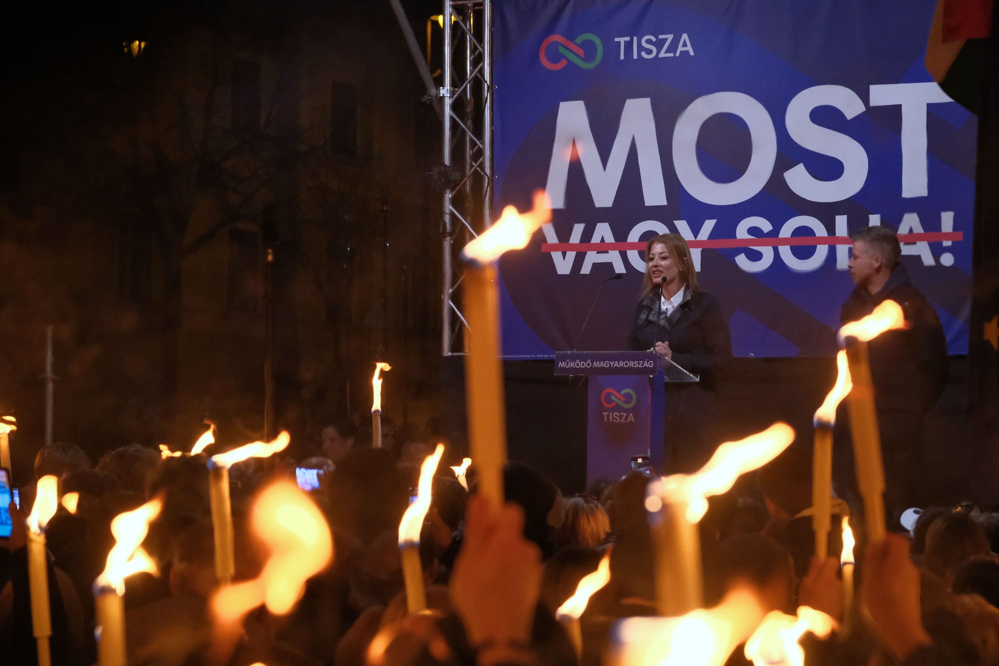 Az országos politikai porondra lépése óta Magyar Péter már ötödik alkalommal érkezett szombaton este Pécsre. A szimpatizánsok most is, ahogy legelőször, 2024 tavaszán megtöltöttek város főterét – ezt az élményét beszédében később Magyar ki is emelte – azonban a pártvezető már nem egyedül állt a színpadra. A két pécsi központú, vagyis a Baranya 1-es és 2-es választókerületben induló Ruzsa Diána és Kovács Áron is felszólalt. Már a rendezvény előtt bő egy órával is sok érdeklődő volt, közöttük látványosan sok fiatal, többen nyilatkoztak is a Telexnek.
