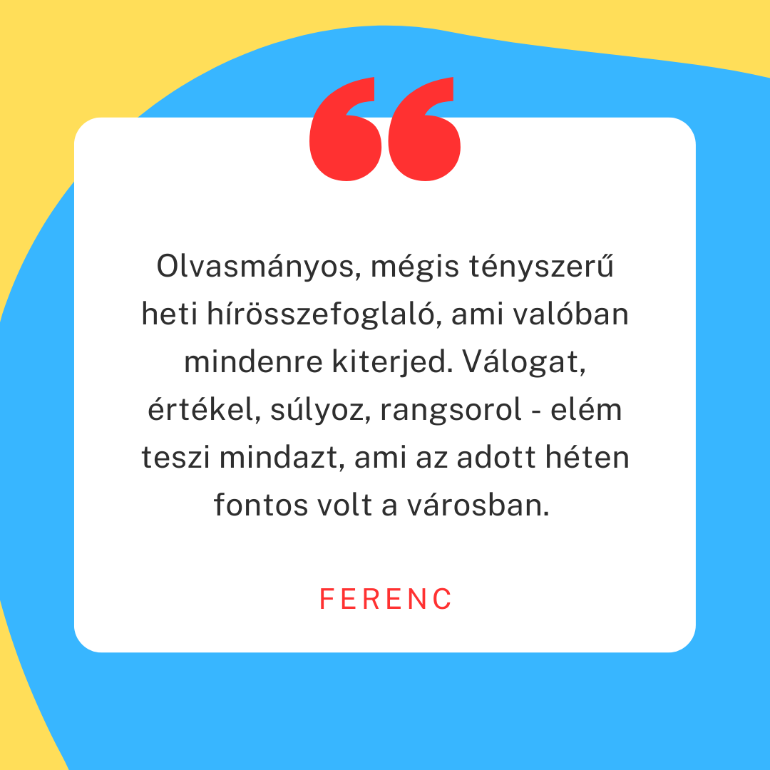 - nem akarsz vagy nem is tudsz a pécsi hírek, történések követésére hetente órákat szánni,