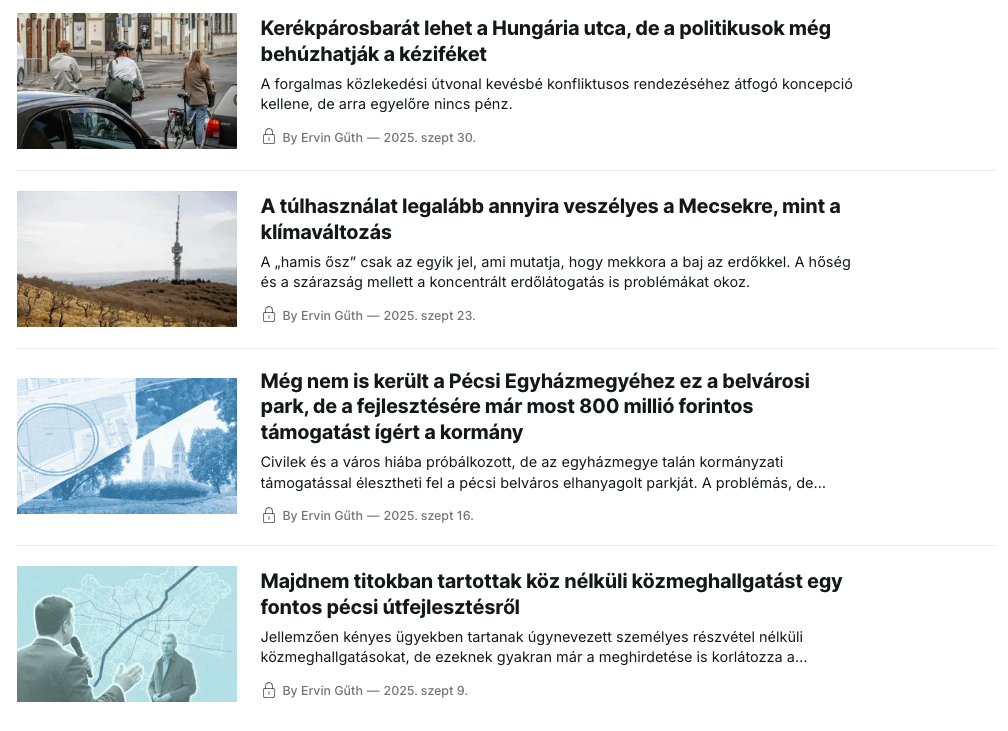 A Mecseki Müzlit négy éve indítottam, hogy a legfontosabb pécsi híreket könnyen fogyasztható hírlevélben osszam meg. Az előfizetők segítségével fenntartható a modell. Az előfizetőknek köszönöm a segítséget, köszönöm, hogy szabadon dolgozhatok!